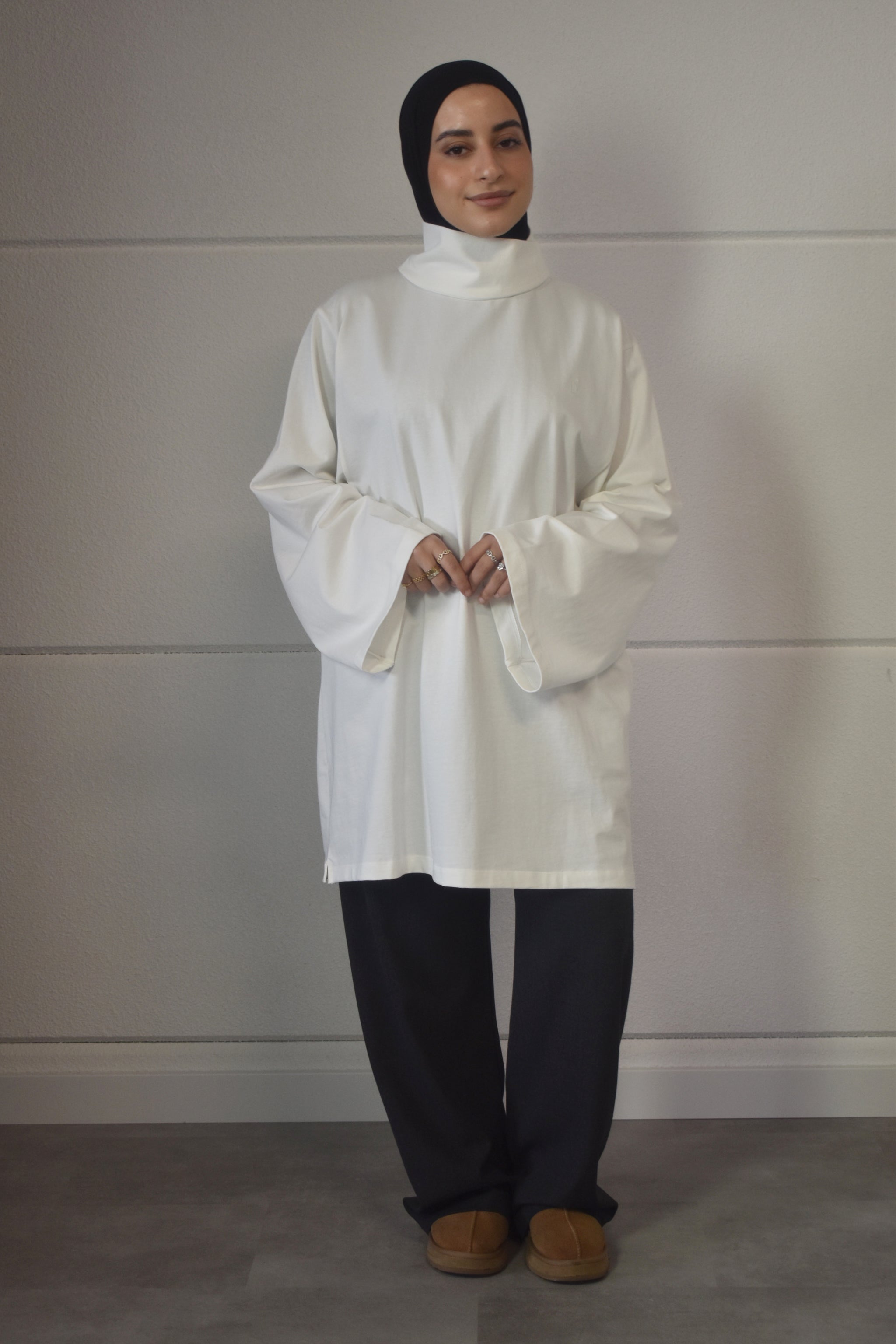 Oversized shirt met losse sjaal - roomwit