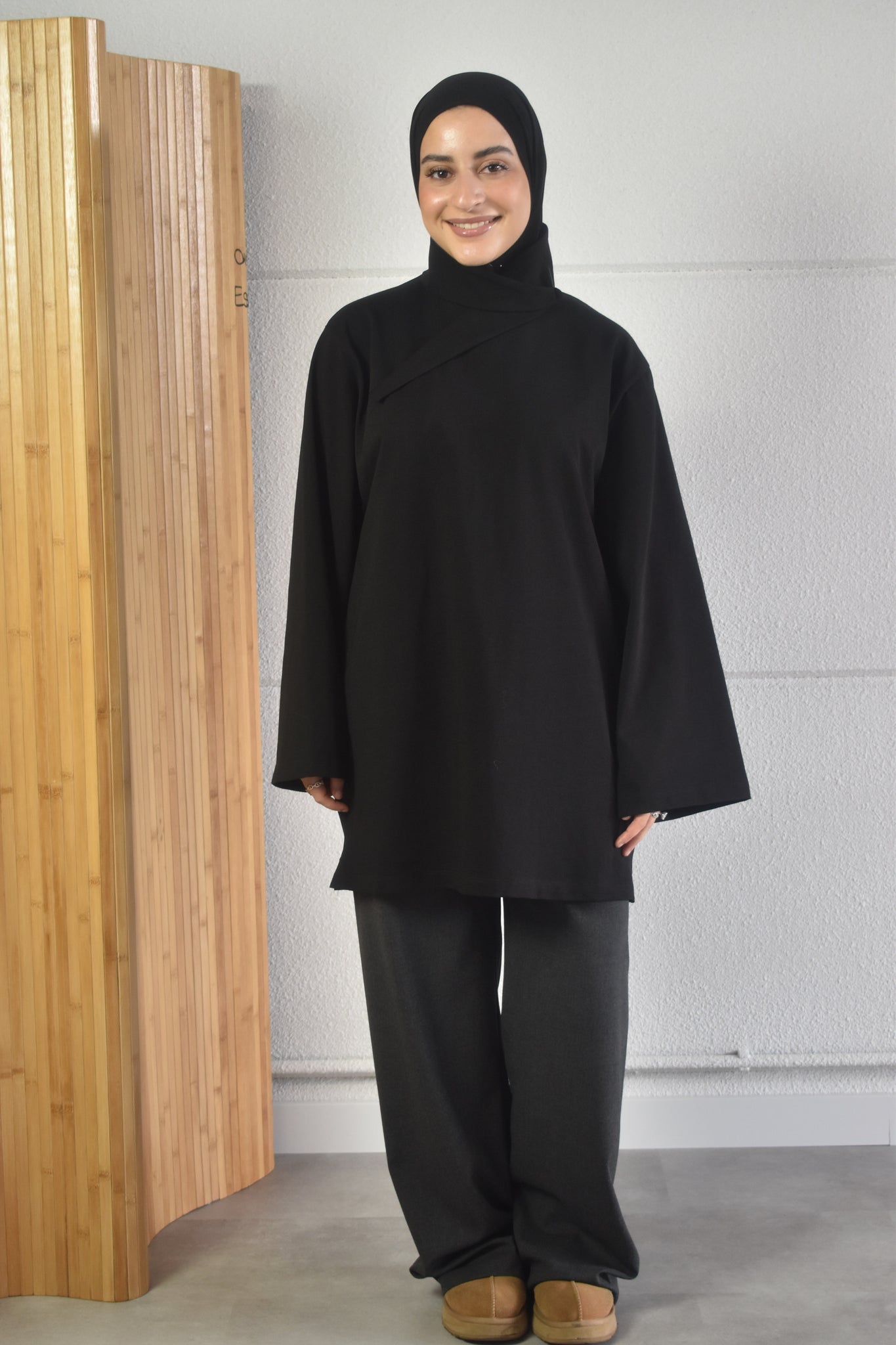 Oversized shirt met losse sjaal - zwart